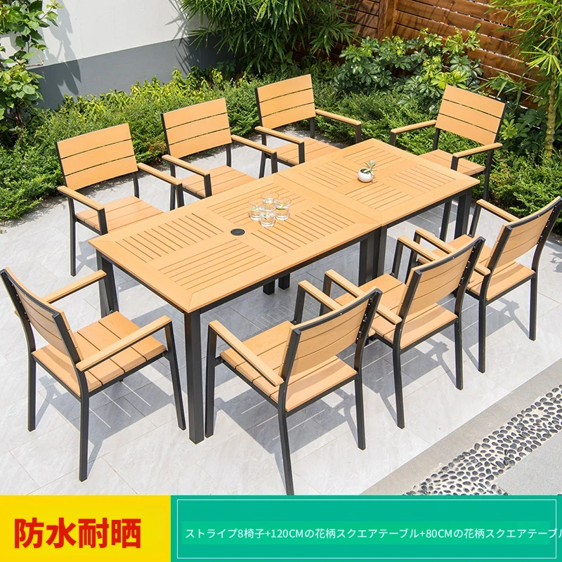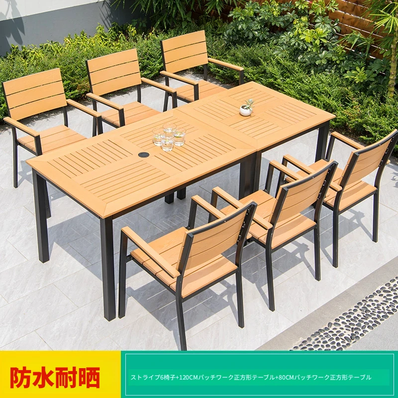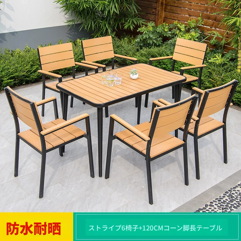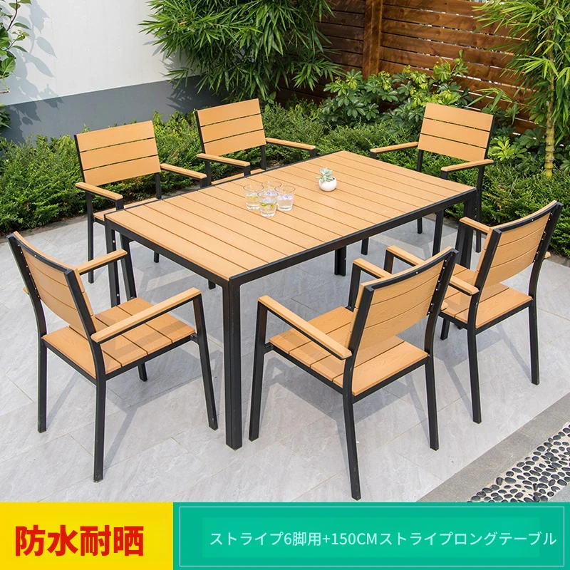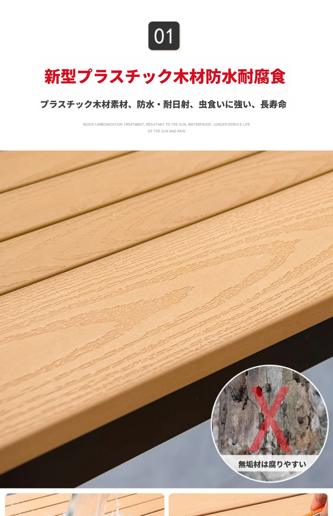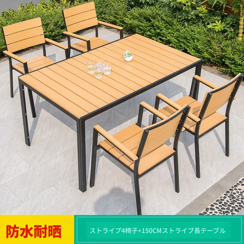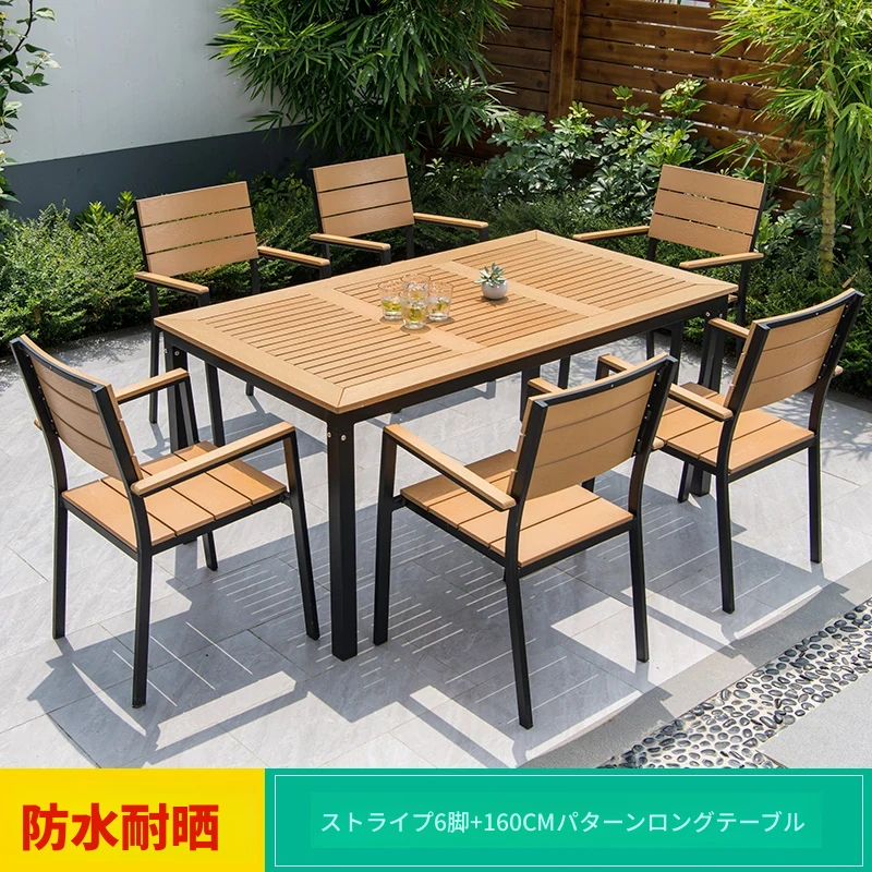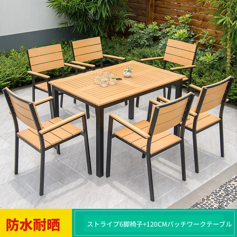 子力アウトドアテーブルチェアセット - 庭やバルコニーに最適!カフェやティーショップにもぴったりな耐候性プラスチック木製デザイン。リラックスしたひとときを演出する、スタイリッシュで機能的なアイテムです!