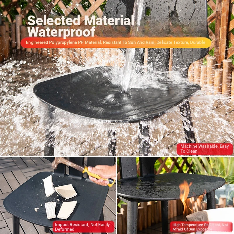 Shield Chair 4 Chair-(Black) +-27.56in Iron Carbon Steel Square Table (Black)(Shield Chair 4 Chair-(Black) +-27.56in Iron Carbon Steel Square Table (Black))