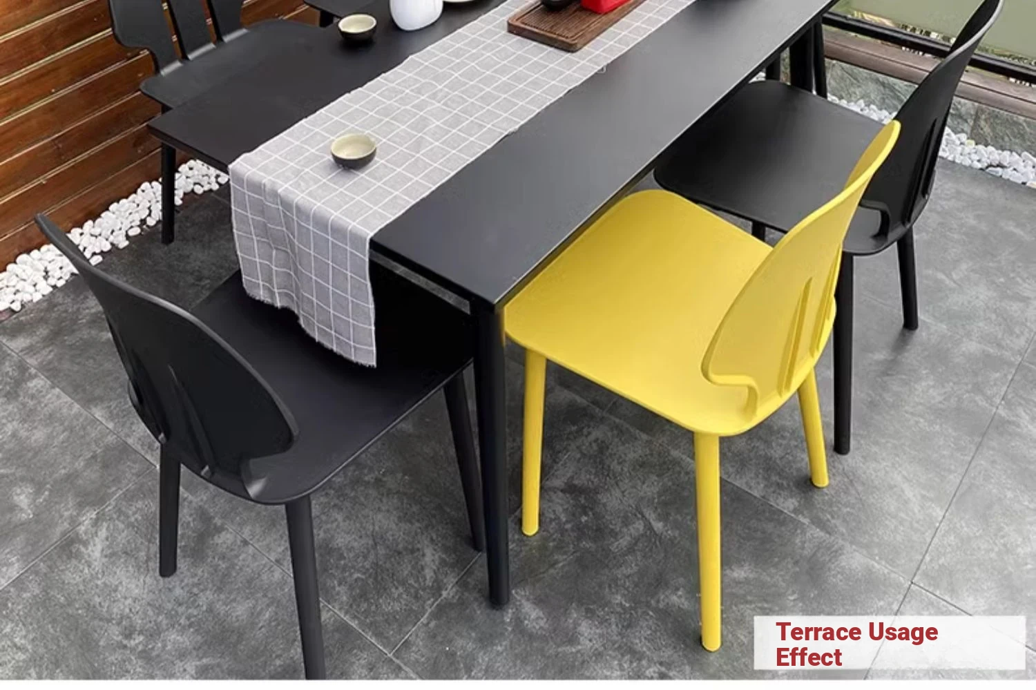 Shield Chair 4 Chair-(Black) +-47.24in Carbon Steel Long Table (Black)(Shield Chair 4 Chair-(Black) +-47.24in Carbon Steel Long Table (Black))