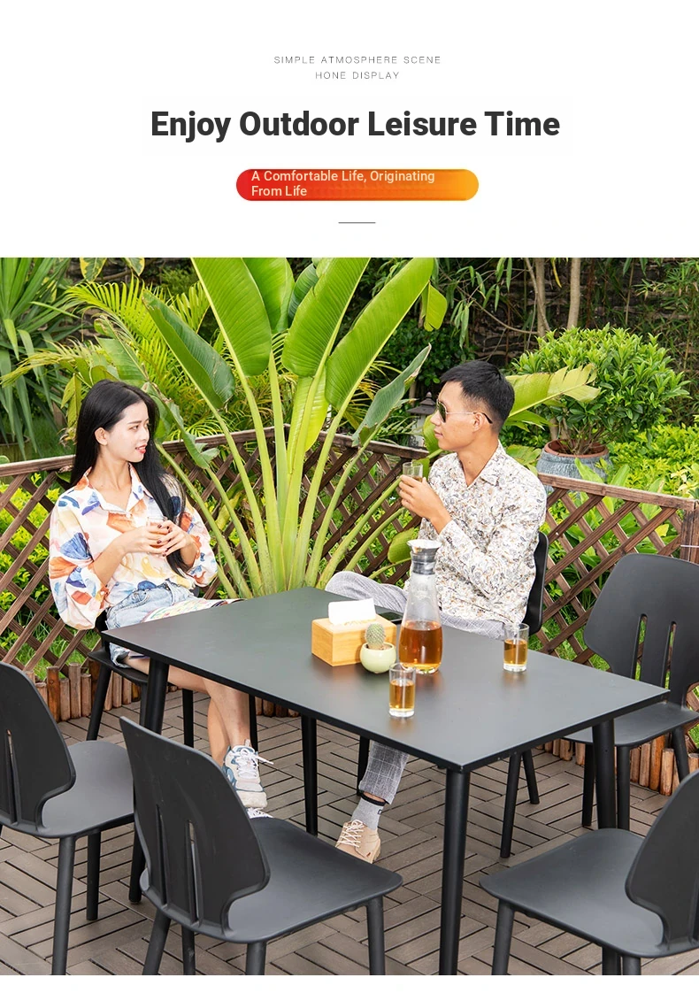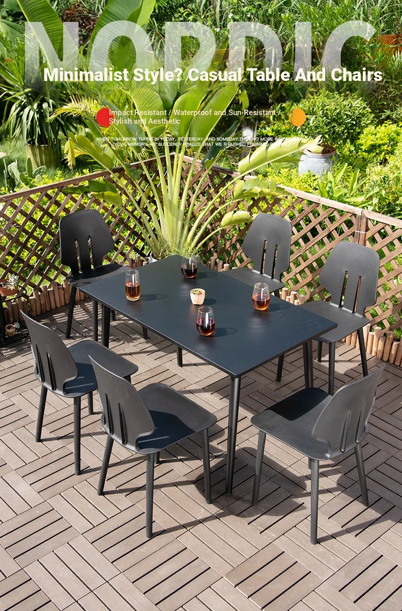 Shield Chair 6 Chair-(Black) +-47.24in Carbon Steel Long Table (Black)(Shield Chair 6 Chair-(Black) +-47.24in Carbon Steel Long Table (Black))